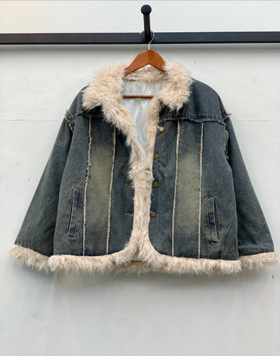 کاپشن جین زنانه خارجی خز دار ۴۶۵۳