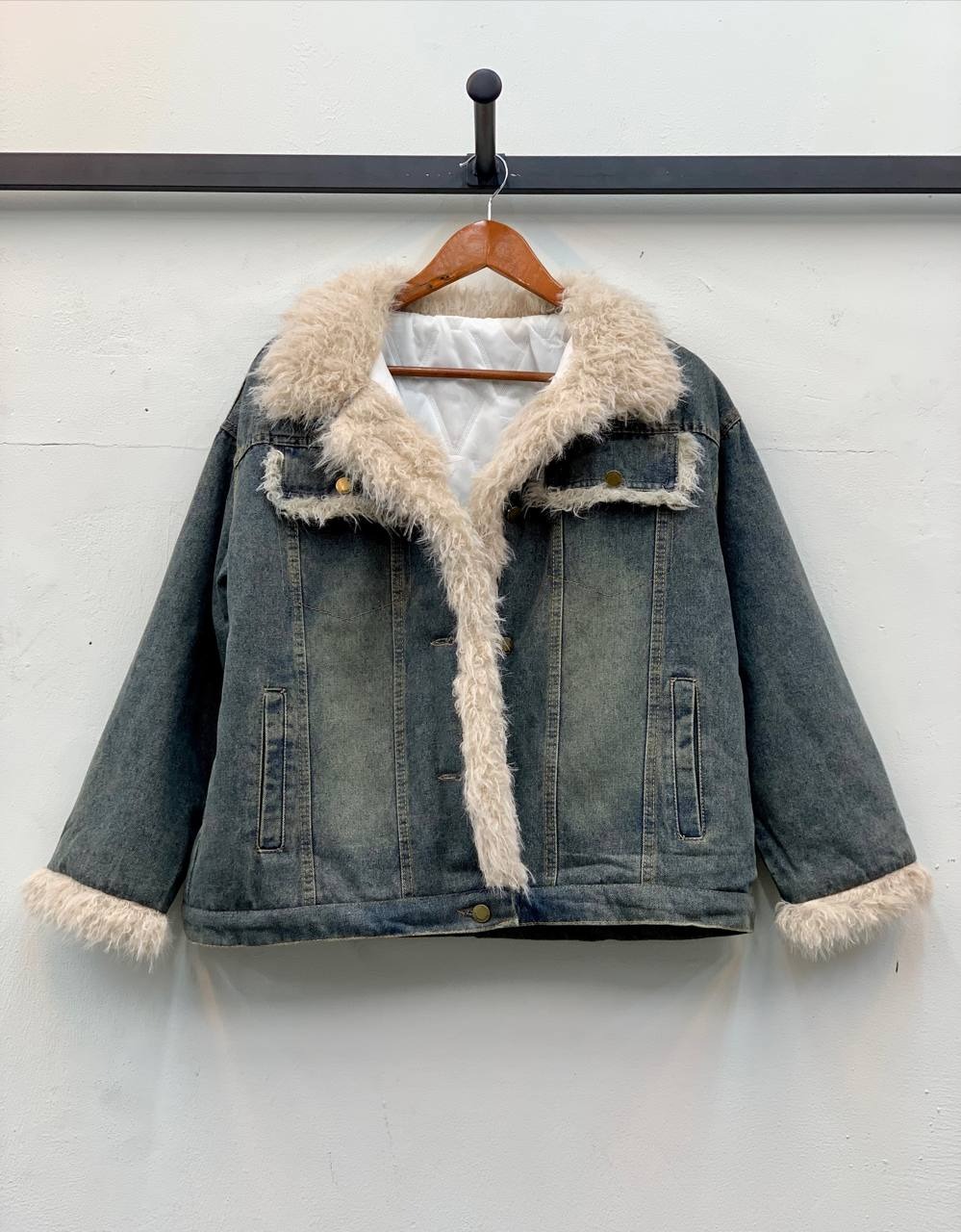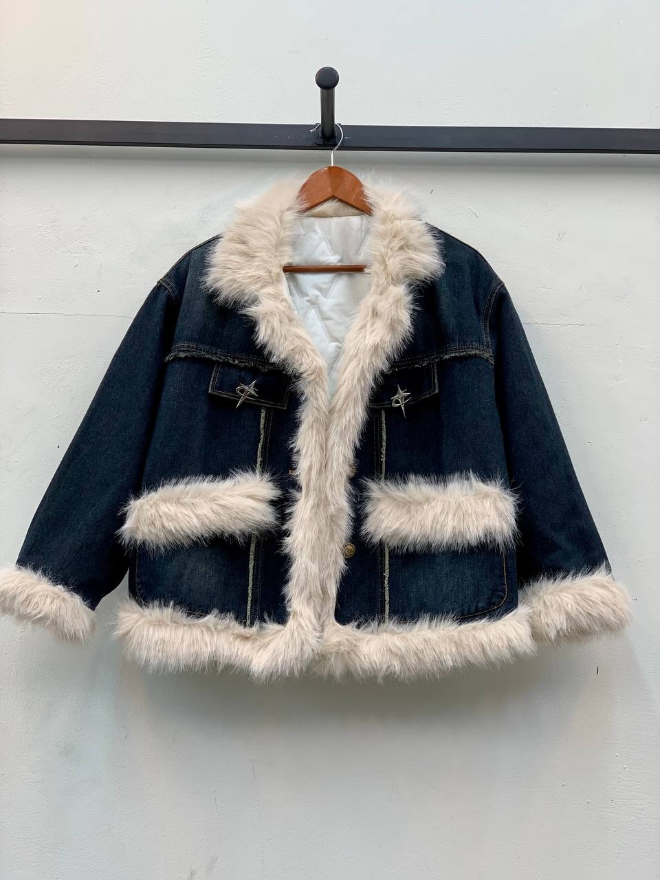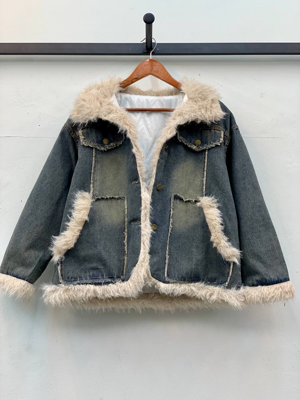 کاپشن جین زنانه خارجی خز دار ۴۶۵۳