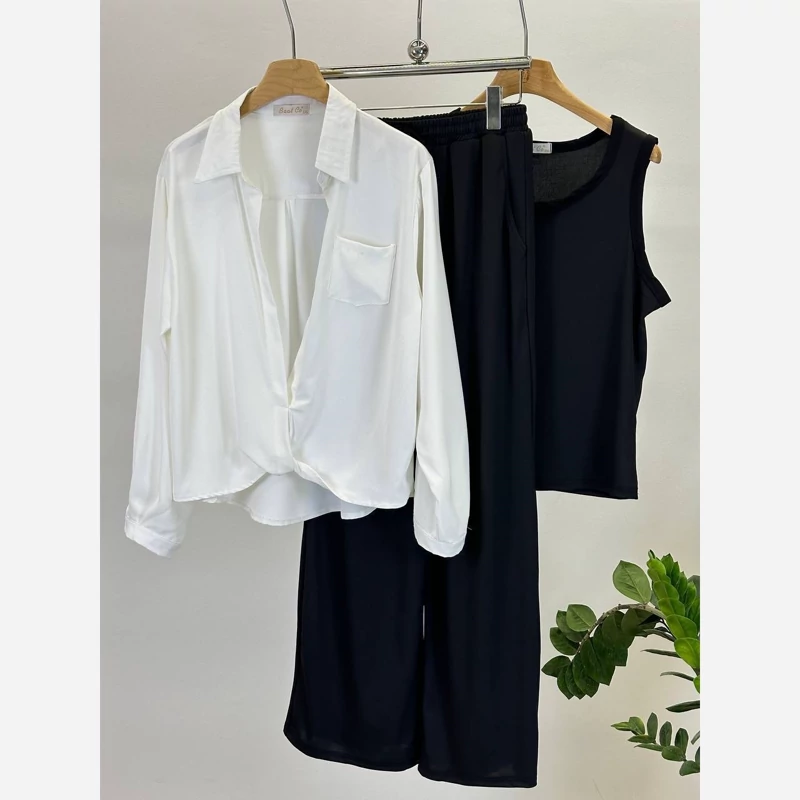 ست بیرونی زنانه خارجی شومیز گره ای شلوار تاپ