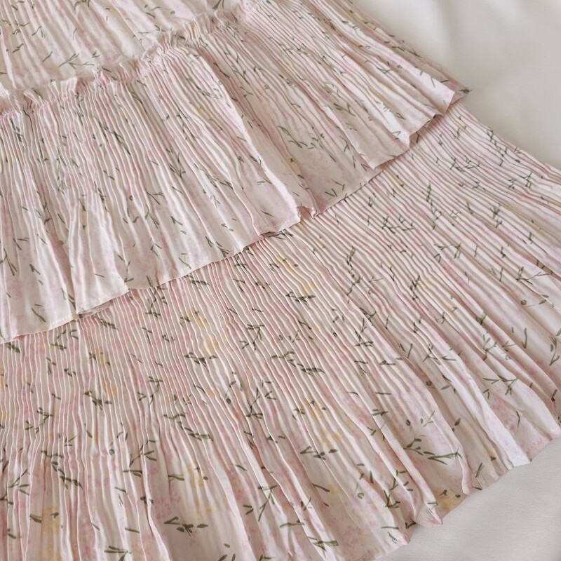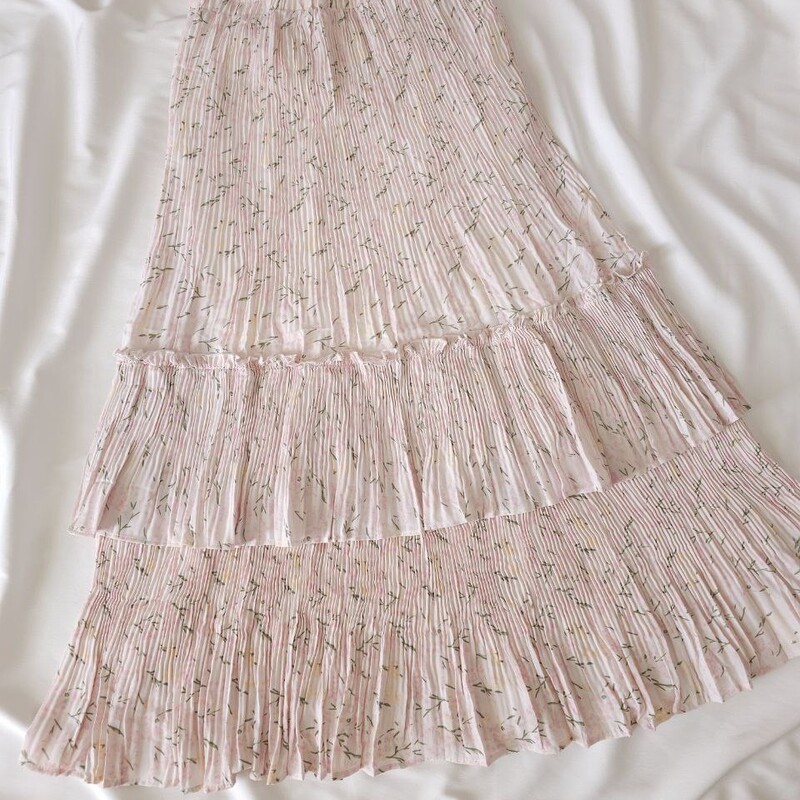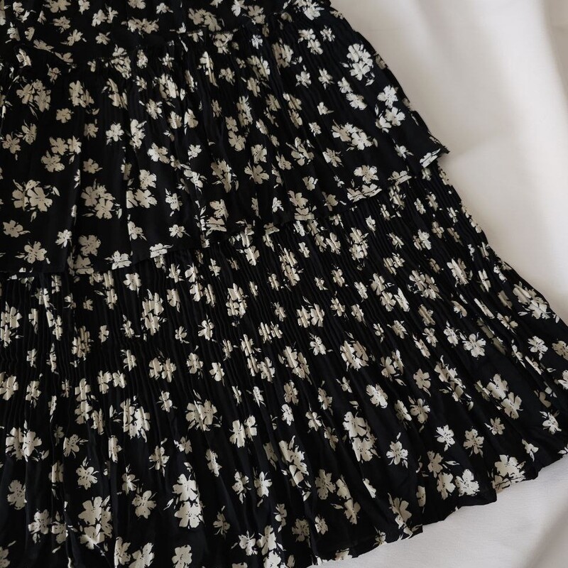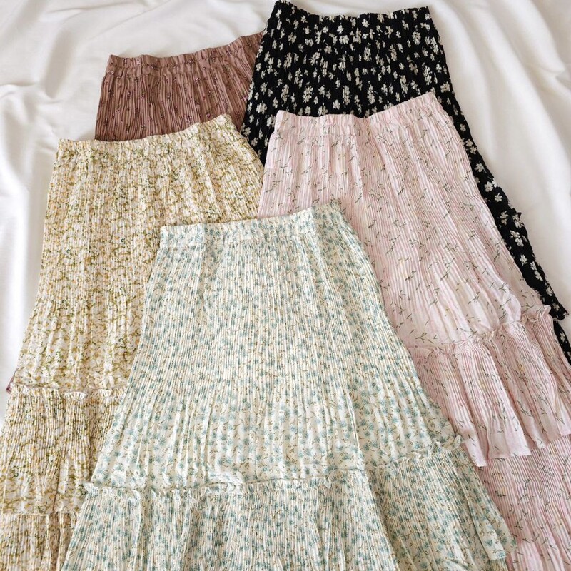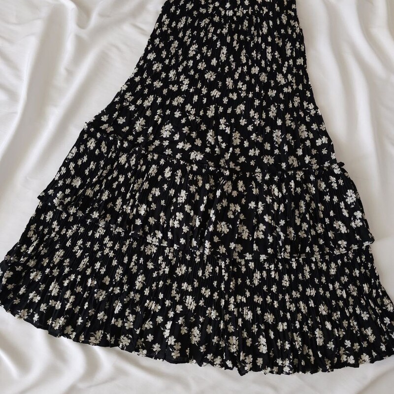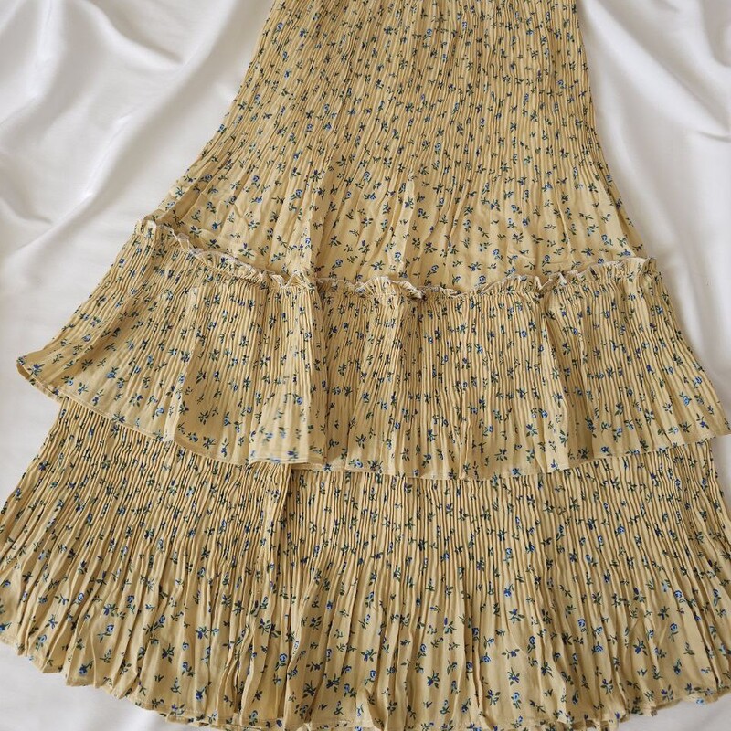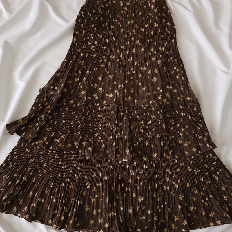 دامن حریرپلیسه استر دار خارجی زنانه قد 88 دامن10گل گلی