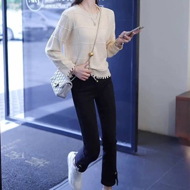 بلوز بافت پایین چین گرم بالا خارجی زنانه دخترانه