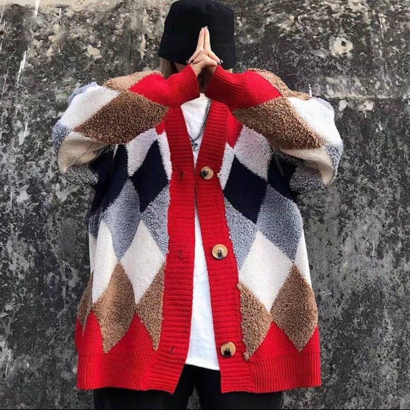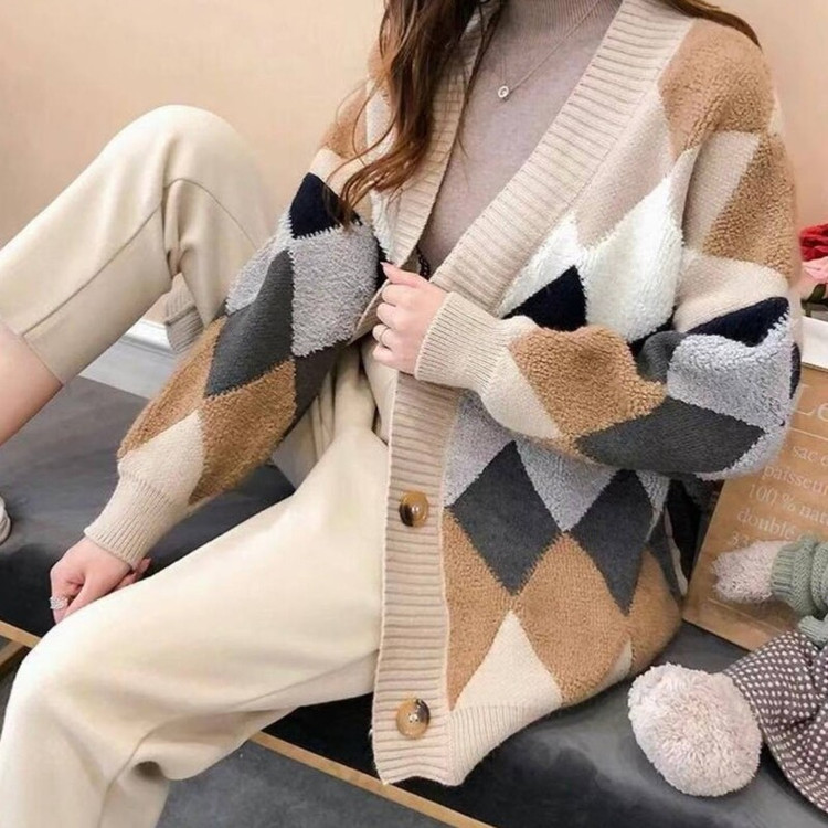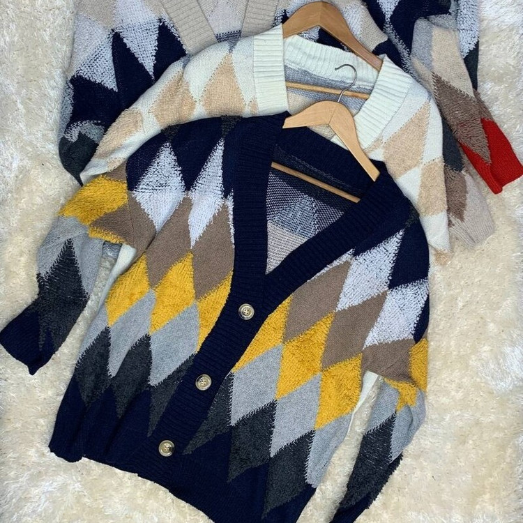 مانتو بافت کاردیگان خارجی برجسته لوزی