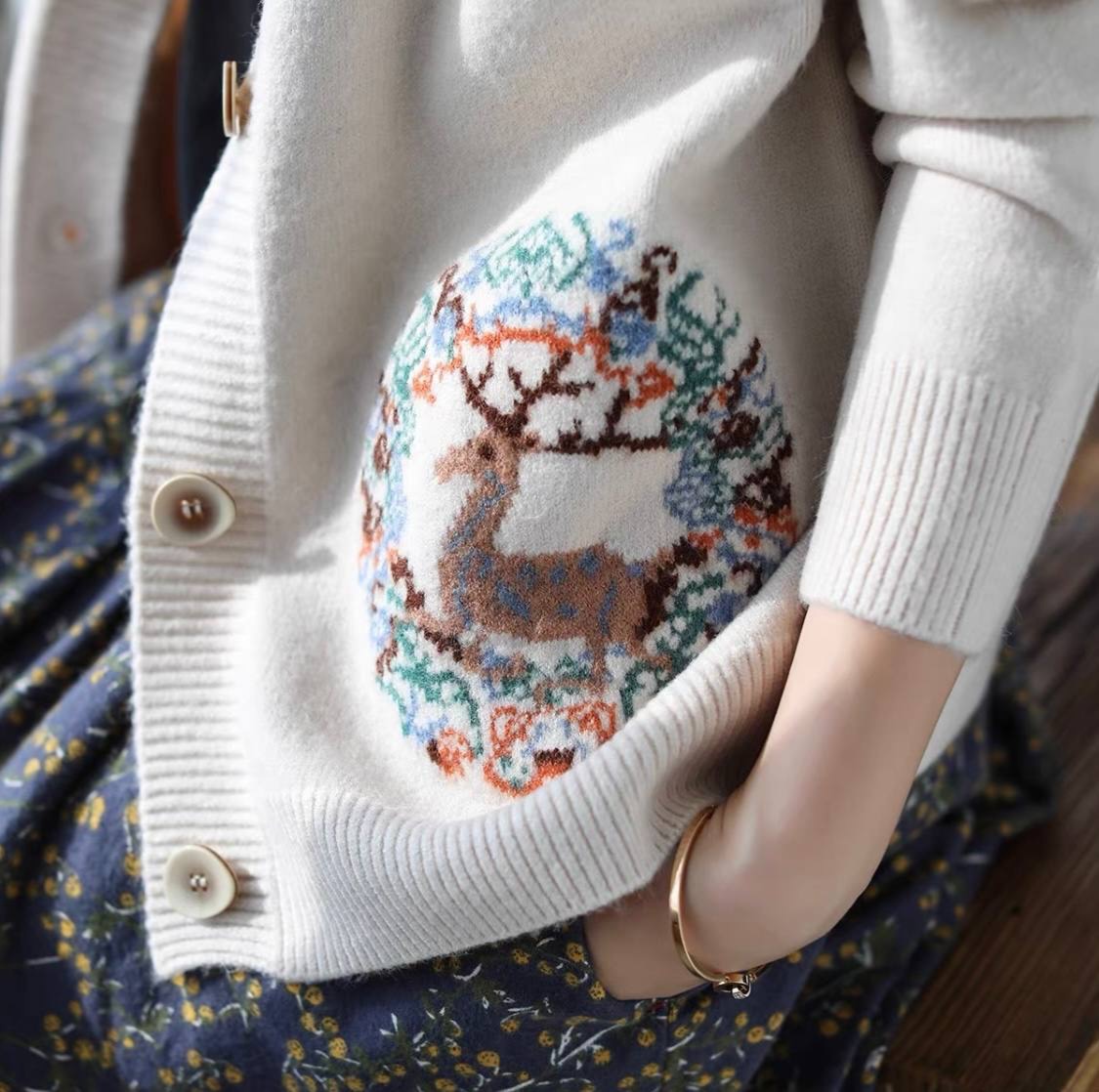 مانتو بافت کاردیگان خارجی طرح گوزن