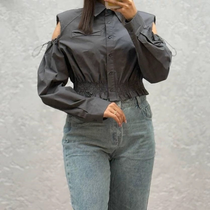 شومیز کراپی زنانه خارجی سرشانه باز