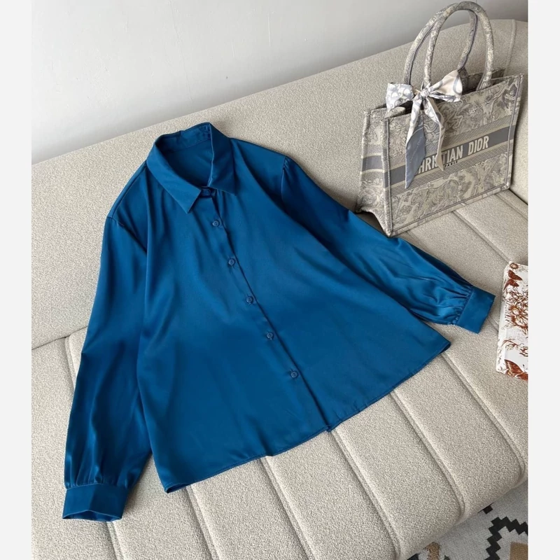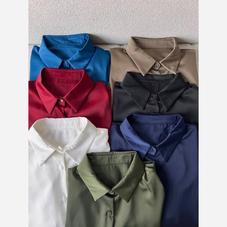 شومیز کرپ سایزبندی: 36 تا 46 قد شومیز66cm دورسینه بزرگترین سایز 108cm پارچه کرپ نرم.لخت.براق