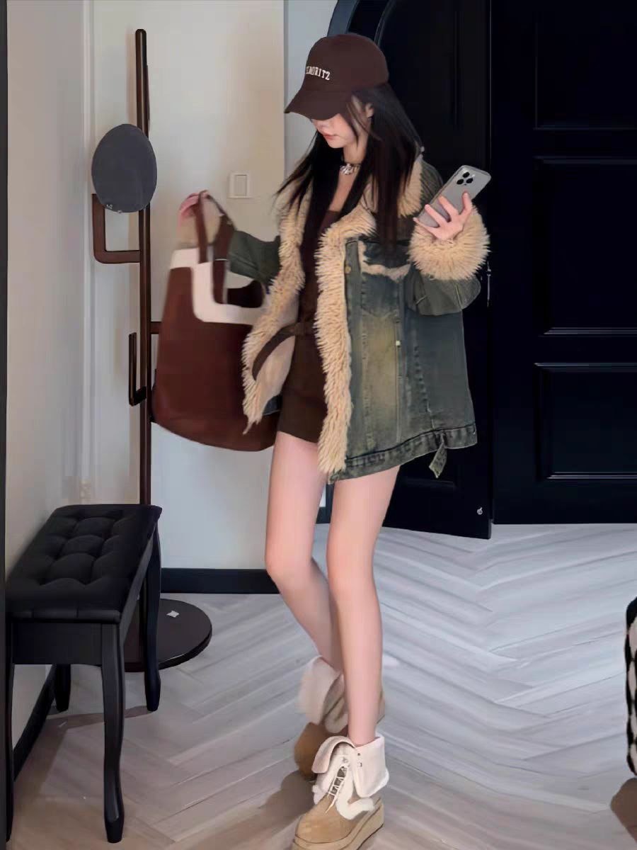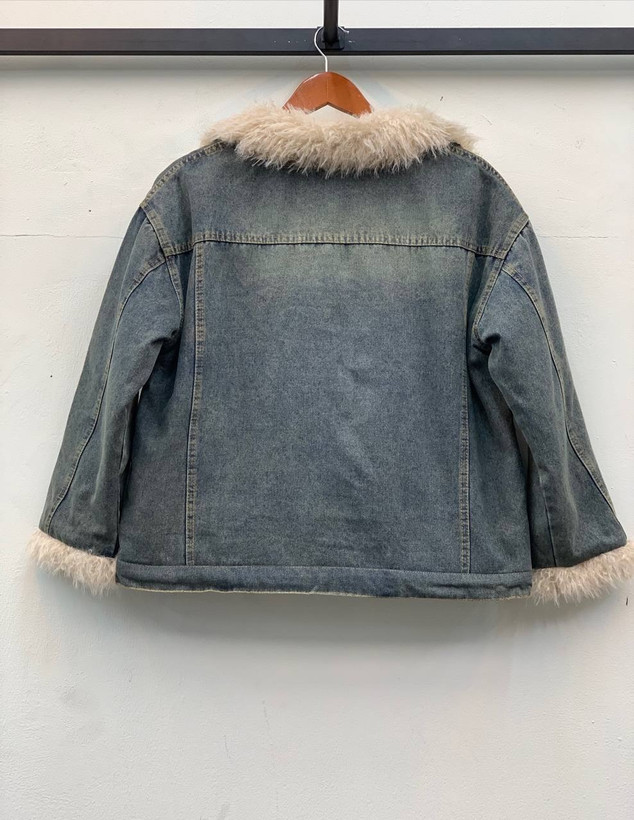 کاپشن جین زنانه خارجی خز دار ۴۶۵۳