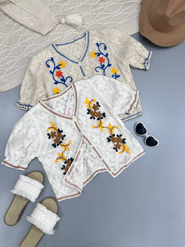 شومیز زنانه خارجی بافت قلاب دوزی استین پرنسسی ۵۳۶۸