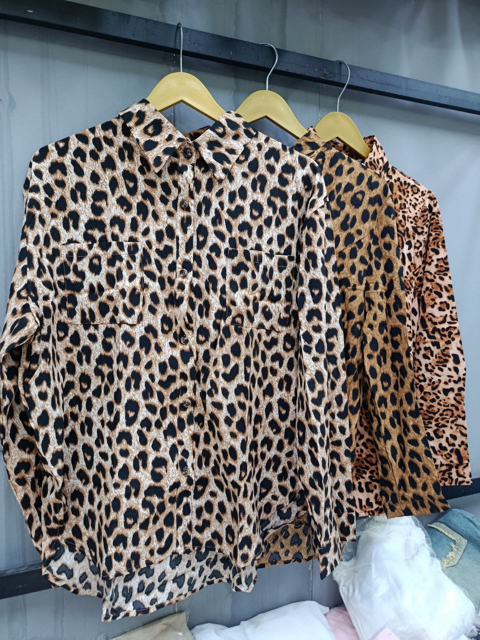 شومیز زنانه خارجی پلنگی یقه دیپلمات
